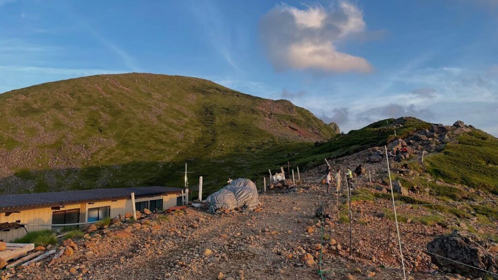 左手に宿泊する硫黄岳山荘さんが見えてきます。