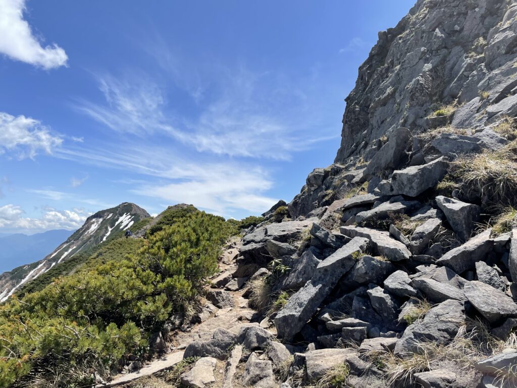 硫黄岳から赤岳方面に一度稜線を降ります。