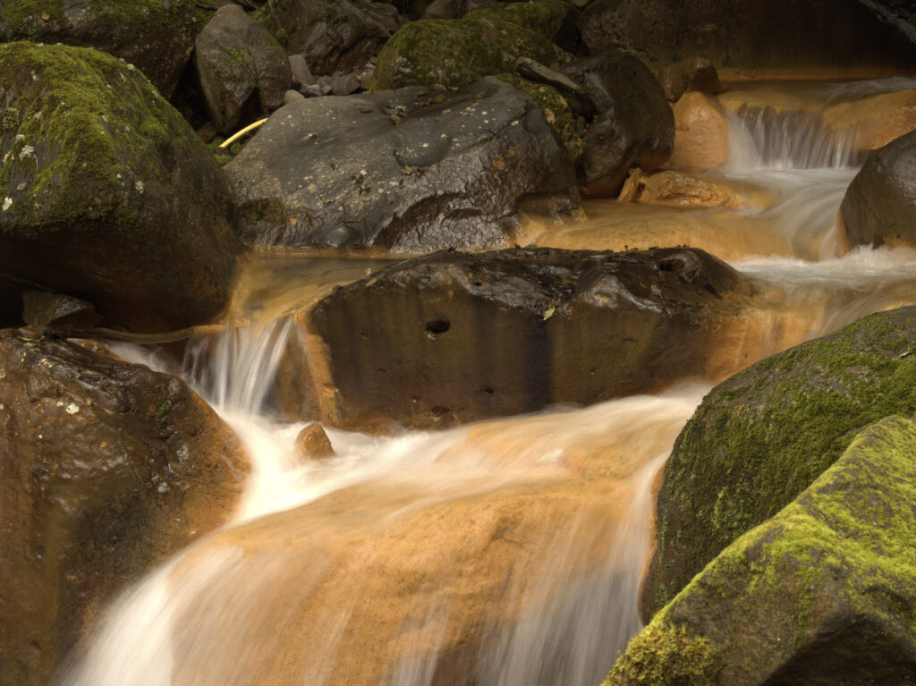 夏沢ヒュッテさんの隣にある河川、硫黄の匂いが広がっています。