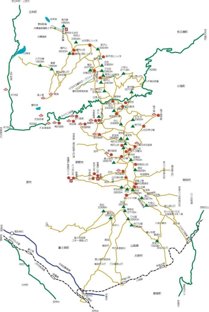 八ヶ岳は下の地図にあるように山小屋さんが多くあり、一年を通して多くの登山者が注目するエリア、トイレなどの心配がいらない人気度が高い山域です。