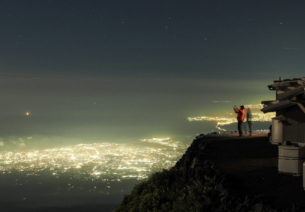 標高を上げると街の明かりが少しずつ遠のいていきます。