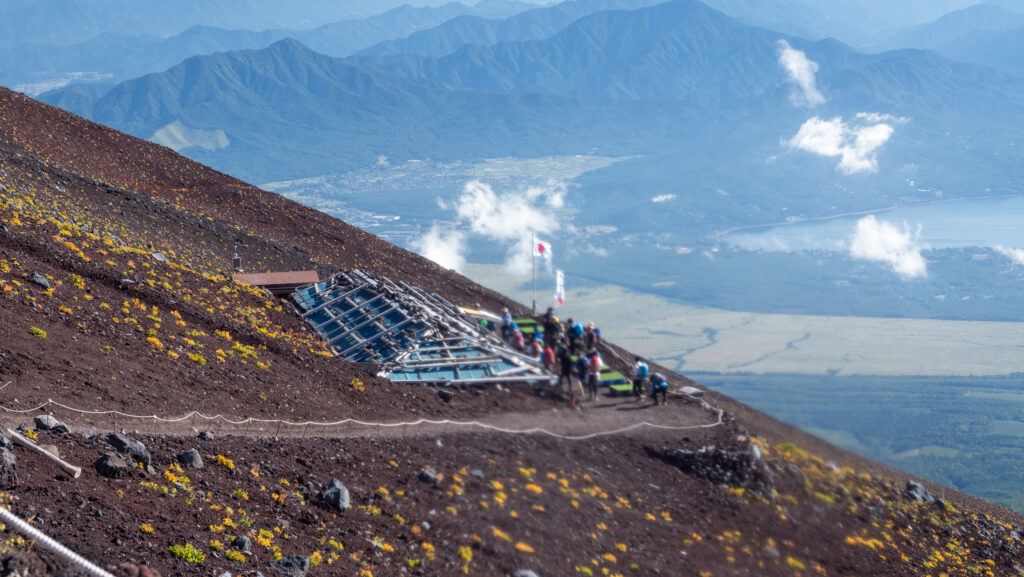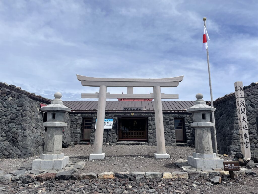 8合目前3250m、この山小屋さんの奥には浅間大社の鳥居があります。