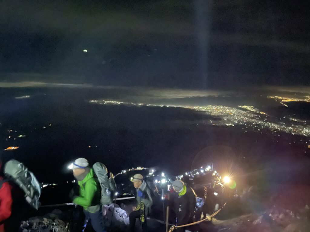 元祖7合目3010mから二日目をヘッドライトをしての登山がスタートします。
