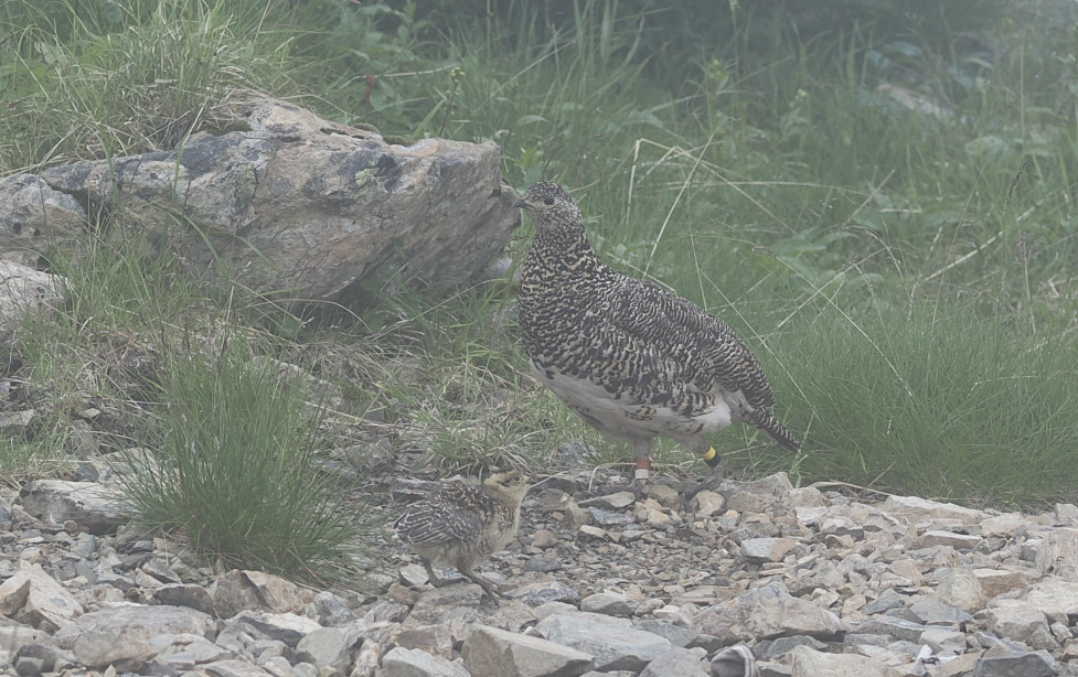 仙丈小屋までの道で子供の連れの雷鳥親子に遭遇しました。仙丈小屋から小仙丈ヶ岳は雷鳥に合う確率の高い場所です。耳を傾け鳴き声を頼りに探して見ましょうね。名前にもあるように晴れている時間帯には他の動物からの視界も広く攻撃を受ける恐れがあるため期待は出来ないですが、曇りの日を中心に何度か目にしたことがあります。